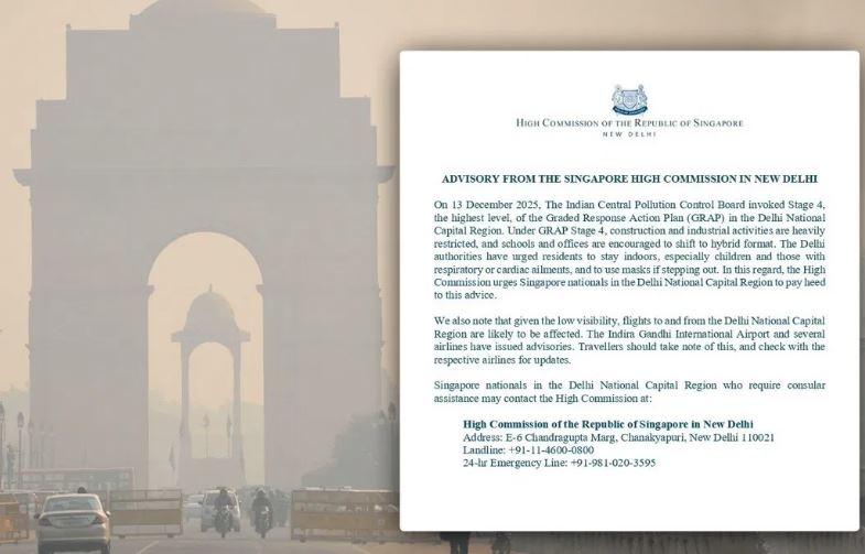 घरों में ही रहें…दिल्ली में खतरनाक प्रदूषण से डरा सिंगापुर, दूतावास ने जारी की सख्त एडवाइजरी