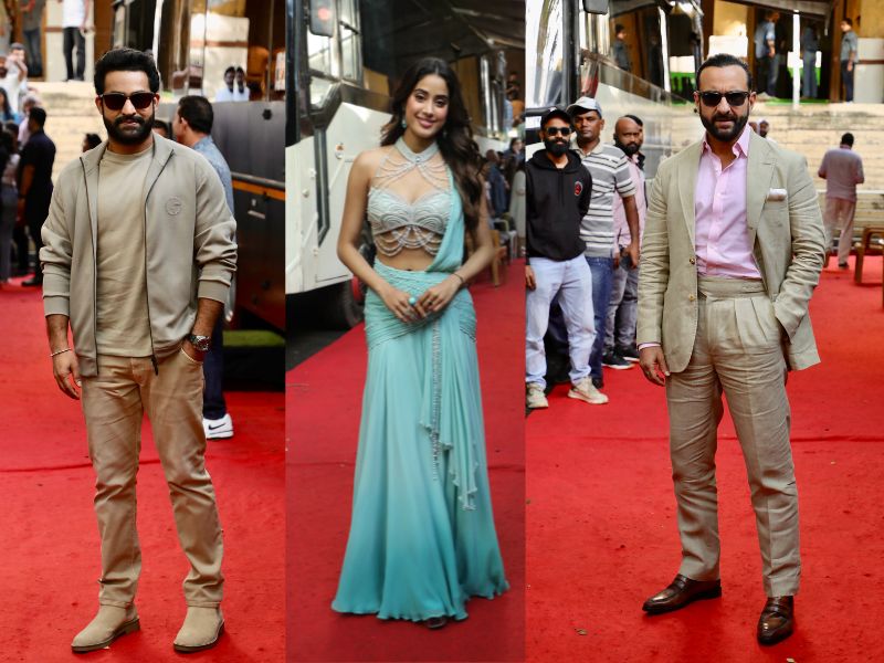 Saif Ali Khan, Janhvi Kapoor and Jr NTR Snapped Promoting Film De...