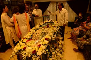 Celebrities Arrive At Bappi Lahiri's Home To Pay Condolences